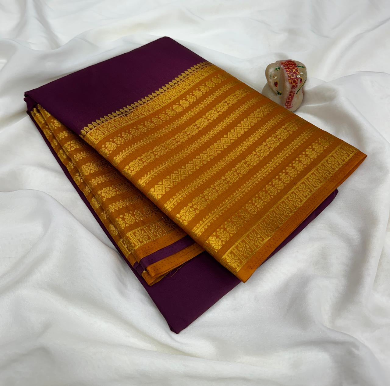 Mysore crepe silk saree in vibrant colours shades and contrast border