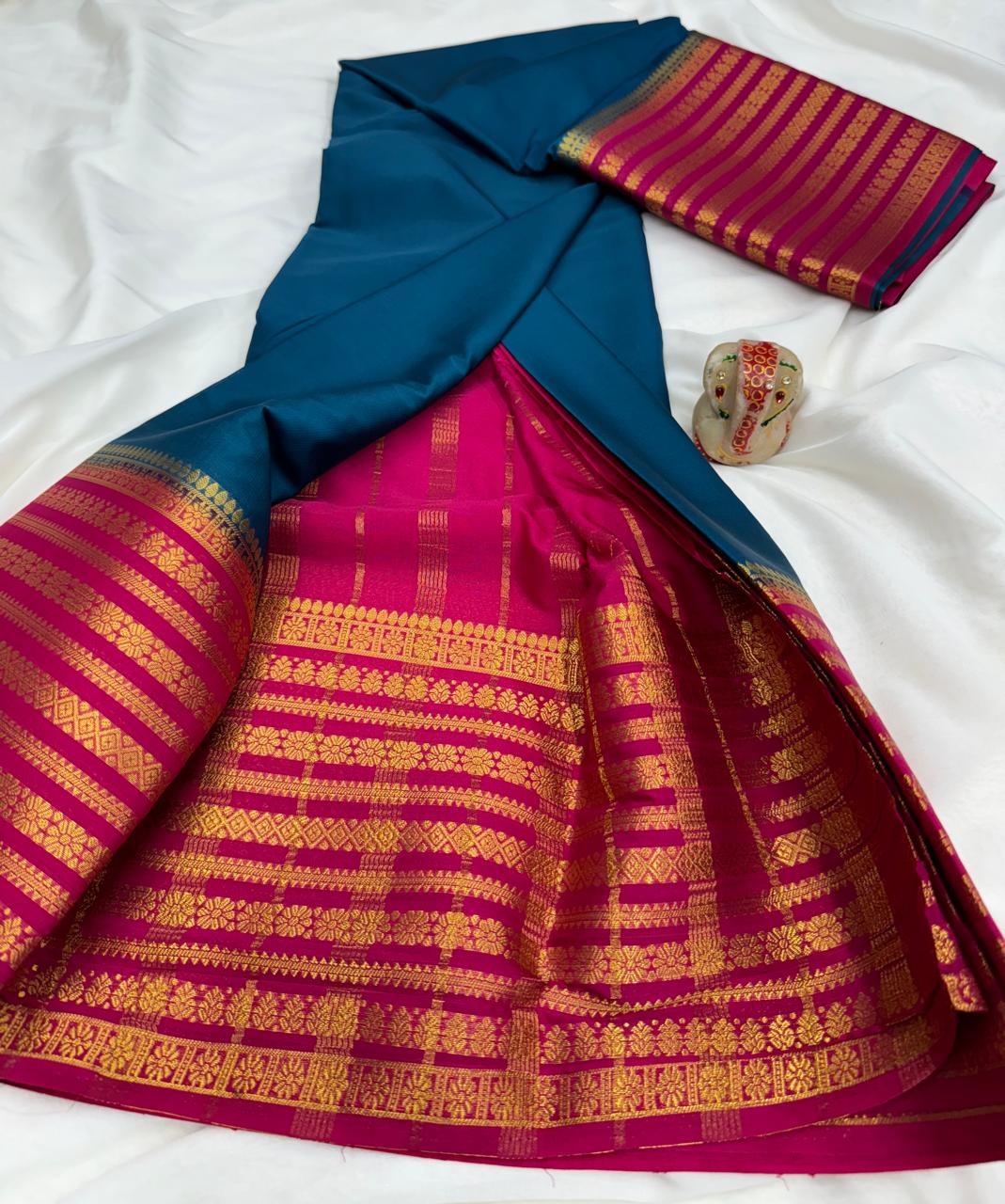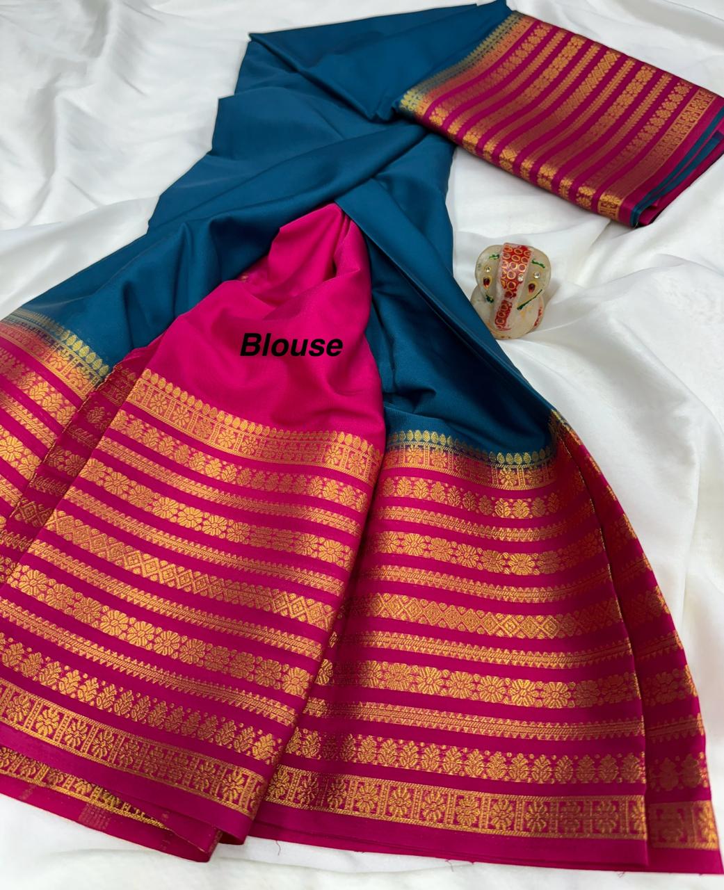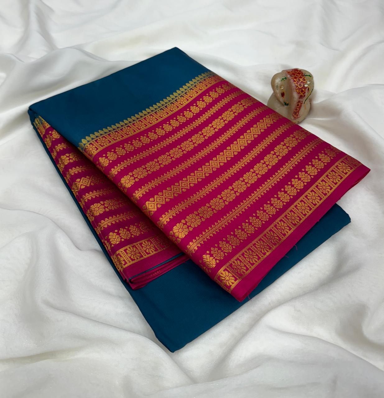 Comes with beautiful chit pallu with contrast blouse.