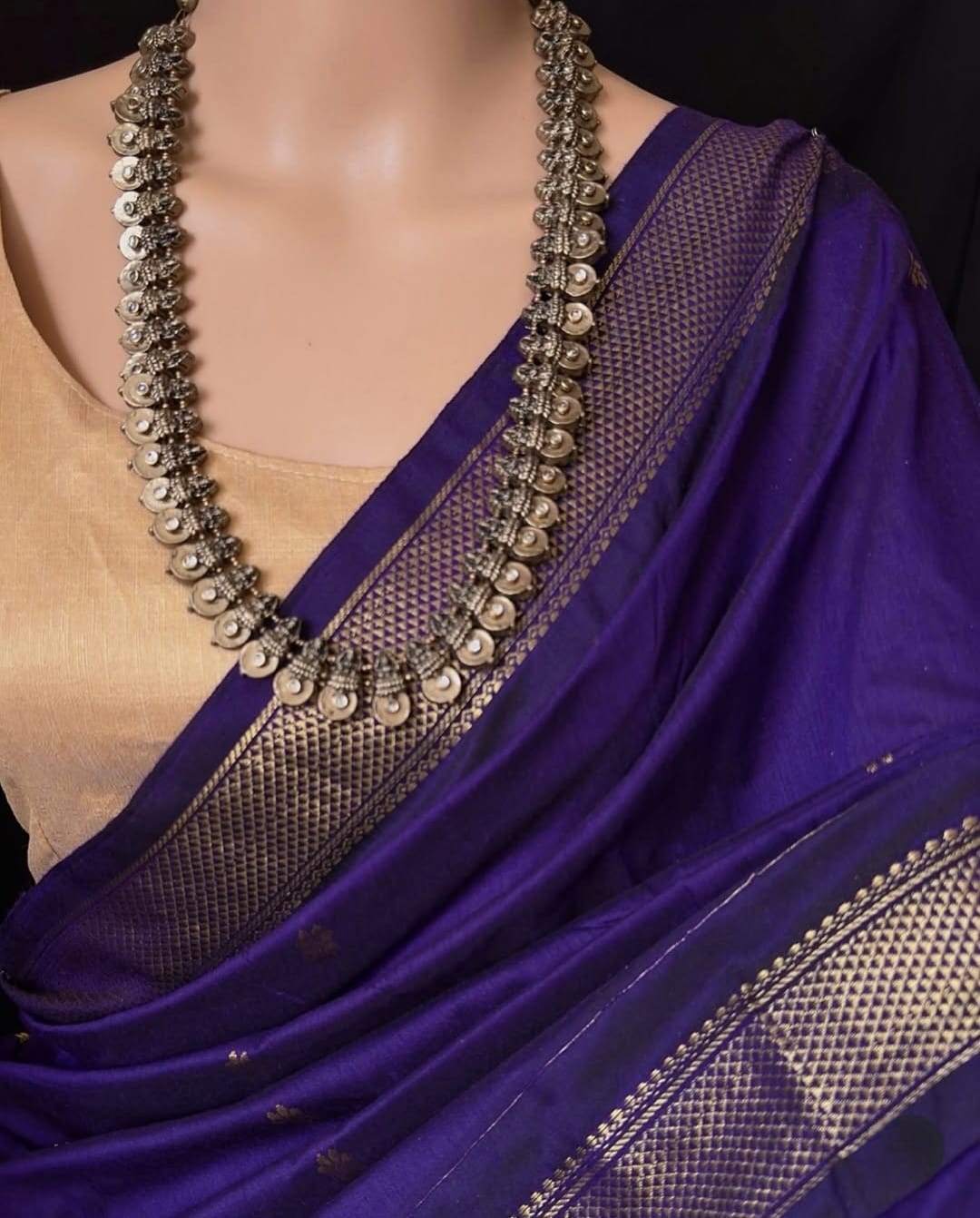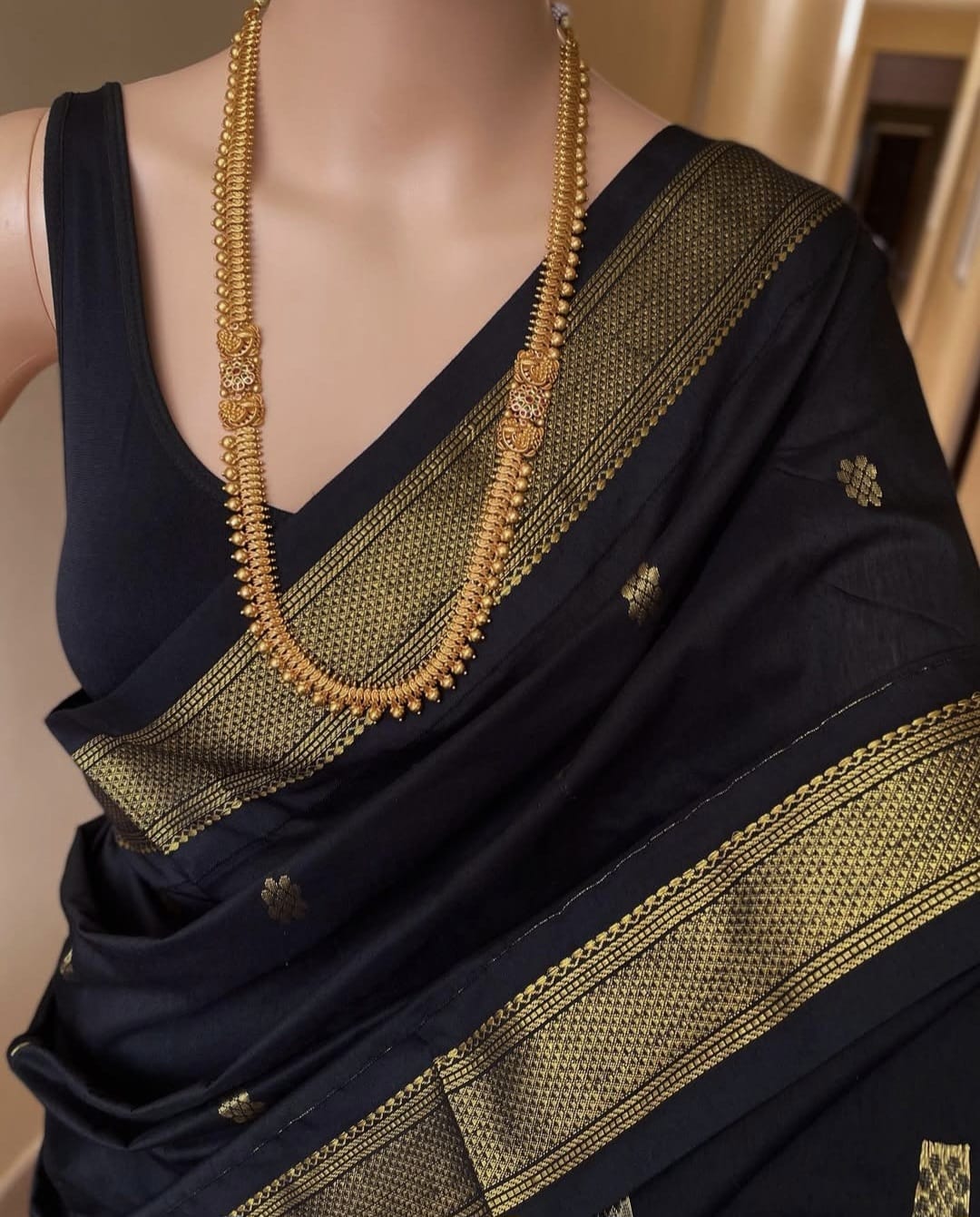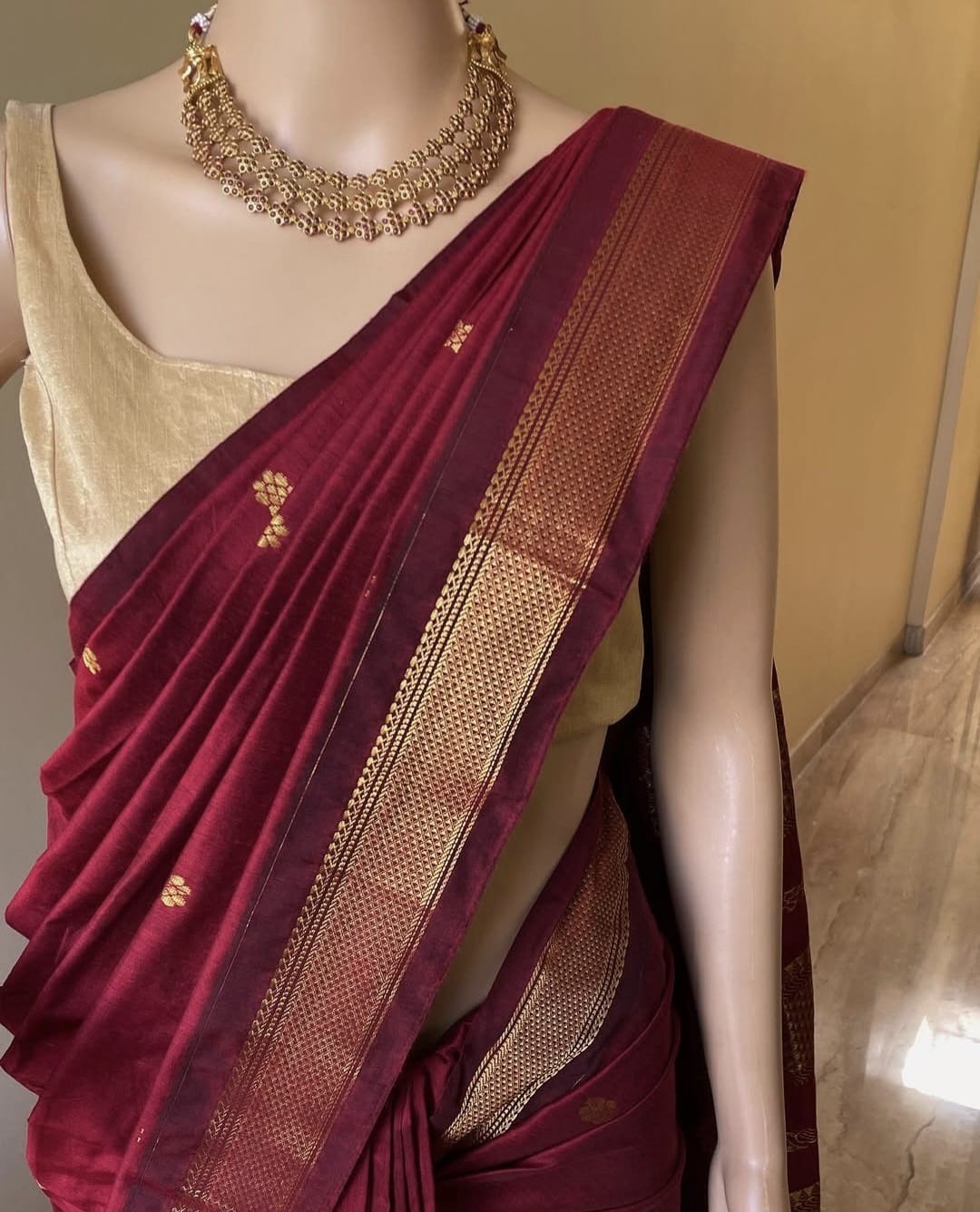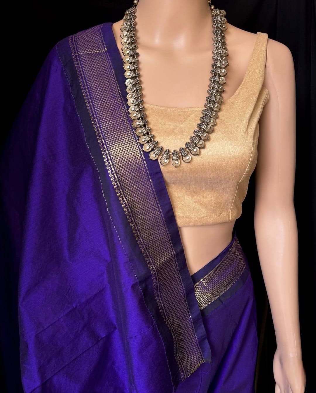 Contrast Grand gold/copper jari pallu and blouse with double side border