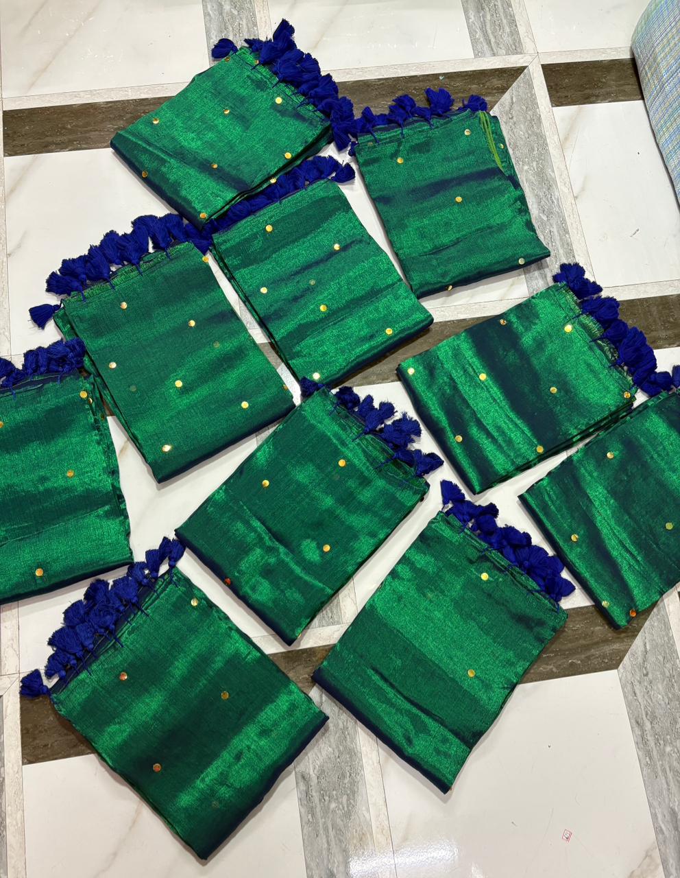 Raga tissue saree with Gini work on it.