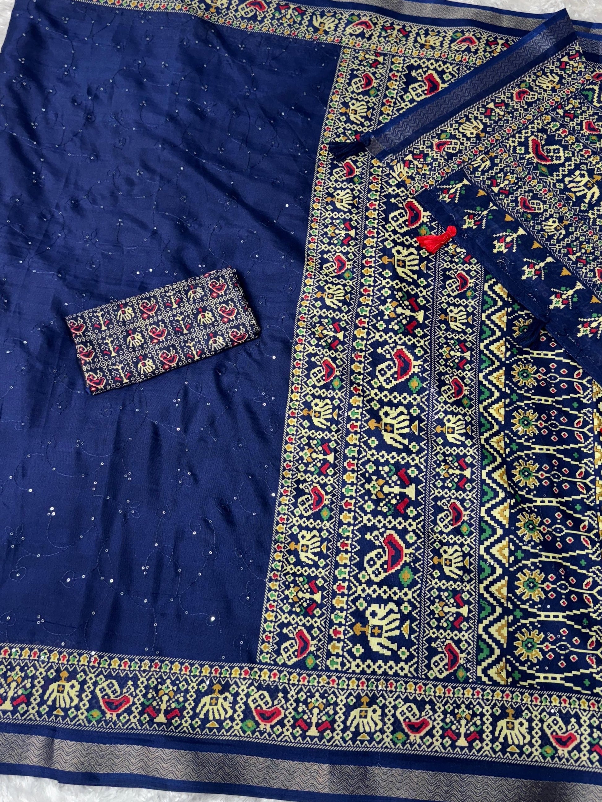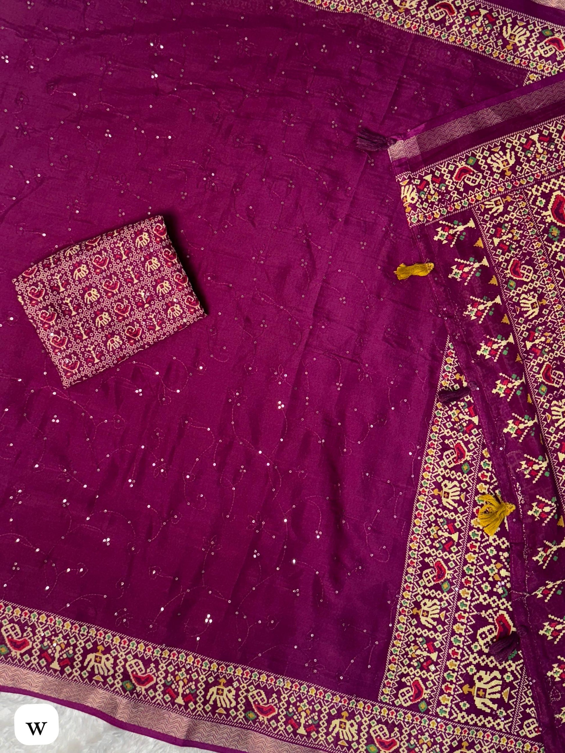 *1- Thread work with sequins in zaal pattern in full saree*
